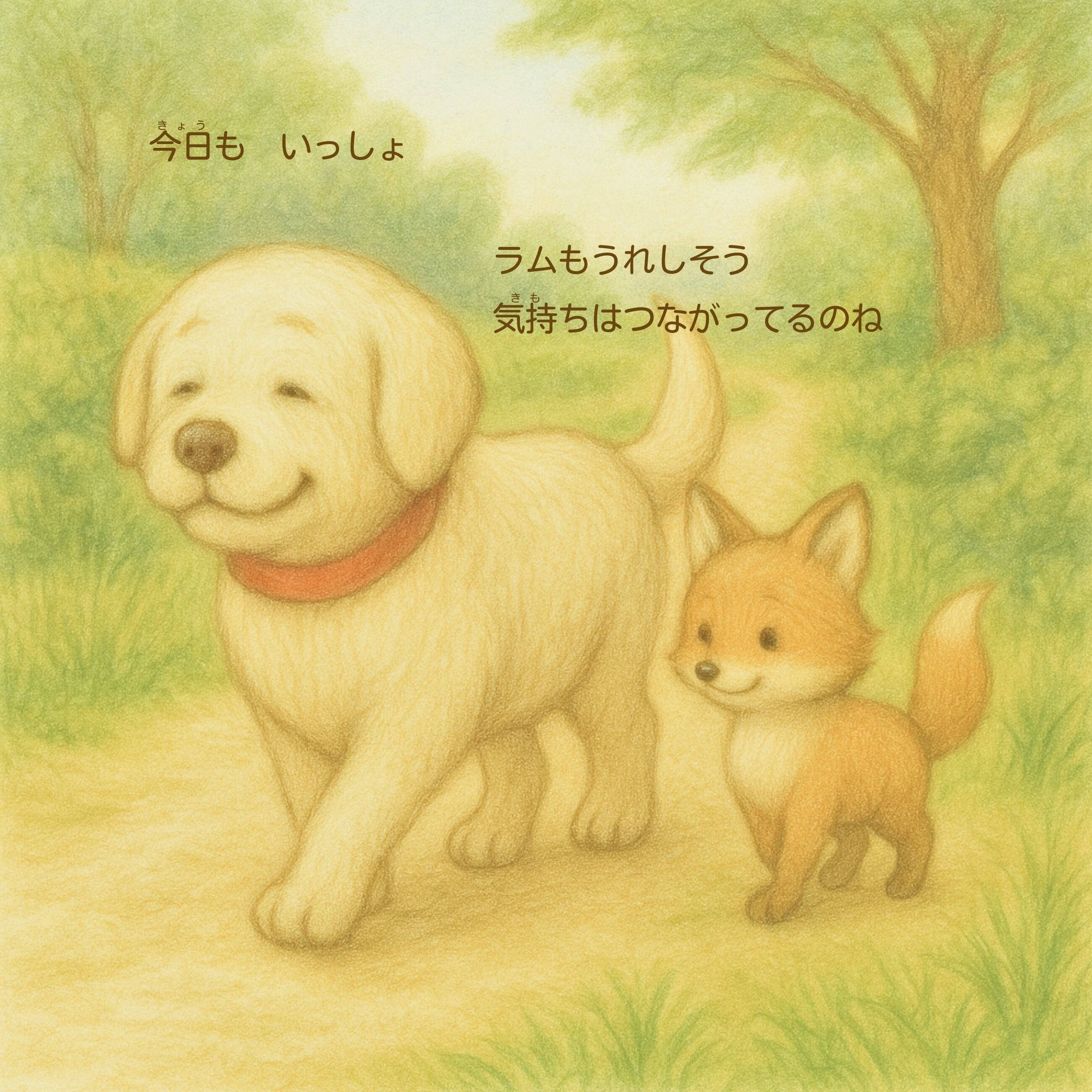 愛犬ラムとの散歩中に出会った子ギツネ・コンとの日々を通して、種を超えたつながり、そして今も続いている絆の物語を多くの方に届けたいと願っています。